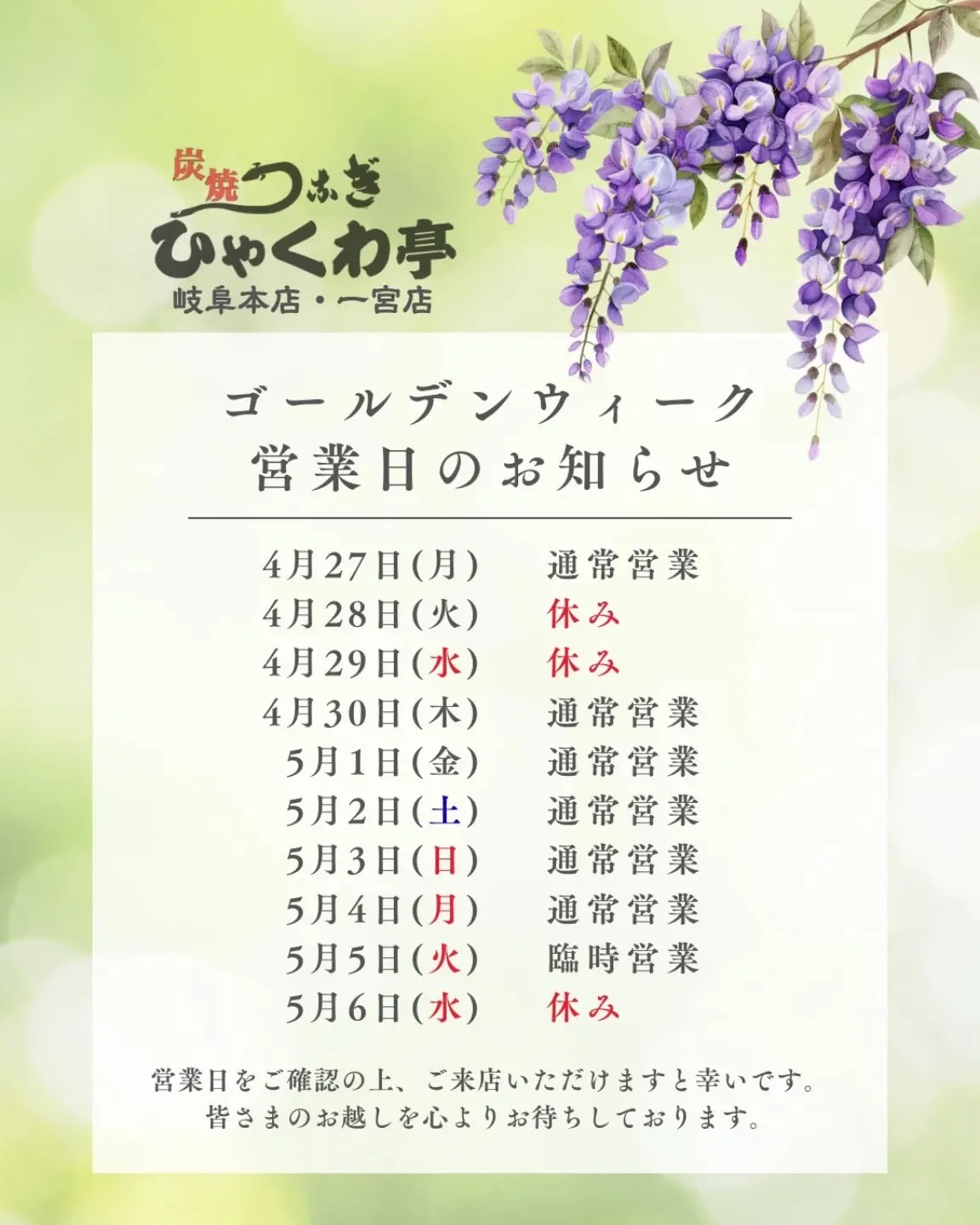 ご来店を心よりお待ちしております😊
